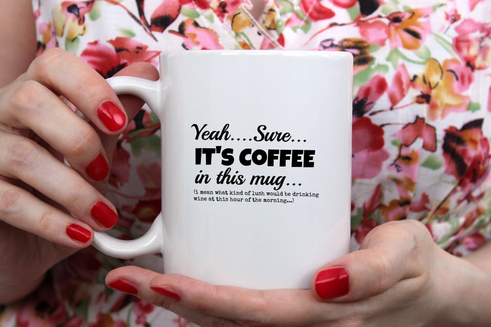 This mug says it all - "Yeah… Sure… It’s Coffee in This Mug… (I Mean What Kind of Lush Would Be Drinking Wine at This Hour of the Morning…)"